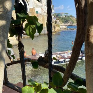 E’ la sede de “Lo Scoglione” un luogo davvero magico: un paradiso roccioso dall’acqua limpida e cristallina, raggiungibile via mare in pochi minuti grazie alle barchette che partono ogni giorno dal borgo. Qui ci si può sdraiare sulle ampie rocce levigate dalle onde e rilassarsi ammirando uno splendido panorama che va dal Vesuvio all’isola di Capri.